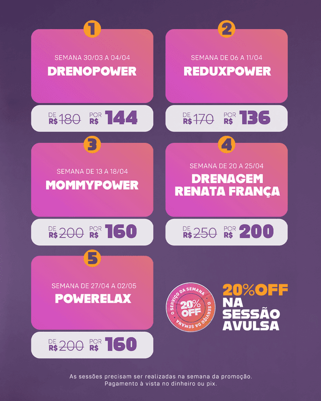 "Oiii, boa tarde !!! Ontem fiz a drenoPower e amei... Estava me sentindo inchada e depois do procedimento me senti uma nova mulher rsrs Excelente atendimento e técnica!! Obrigadaa 💜💜"